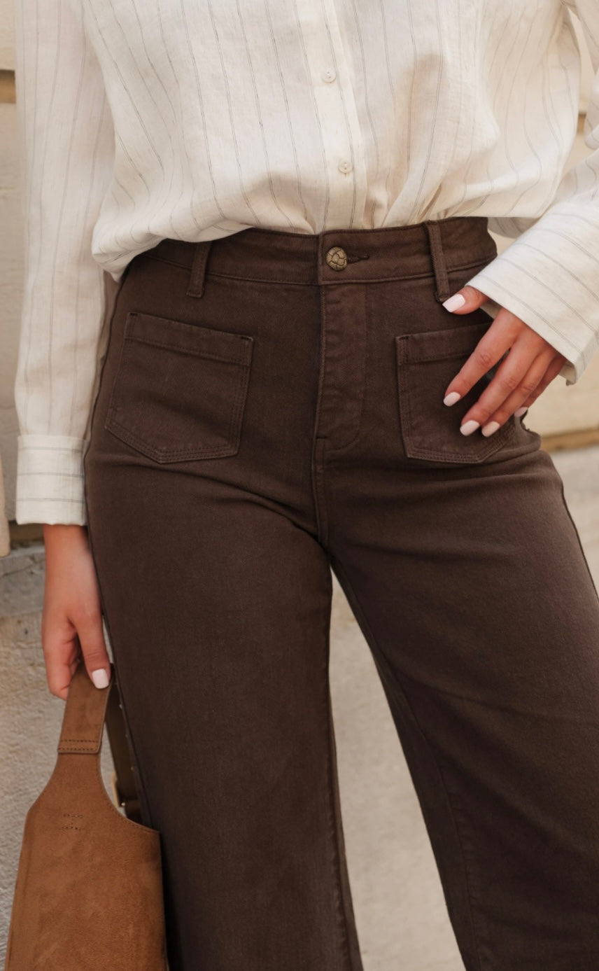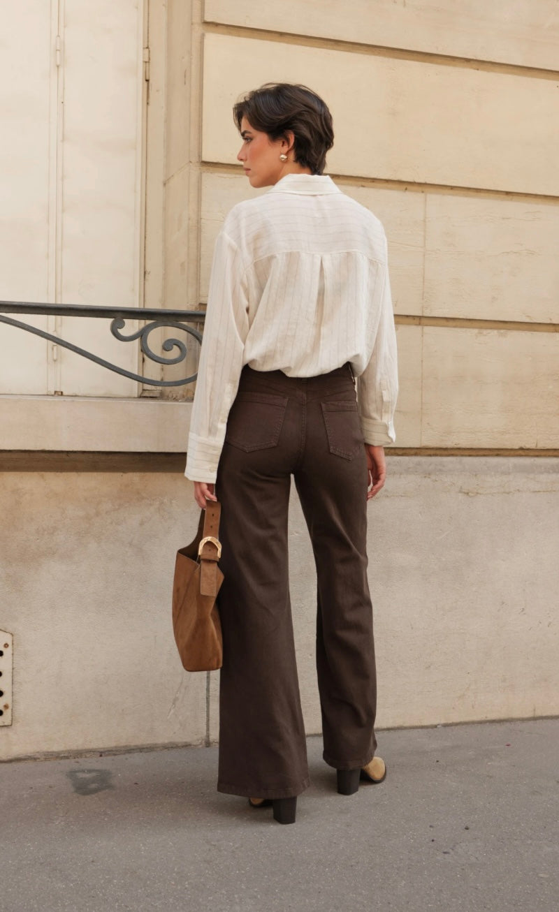 Le jean Stanley est un jean Wide : évasé des hanches jusqu'aux chevilles.