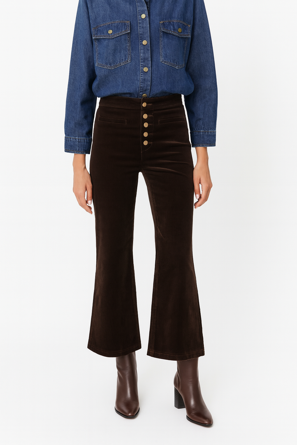 Pantalon chocolat en velours côtelé, doux et extensible