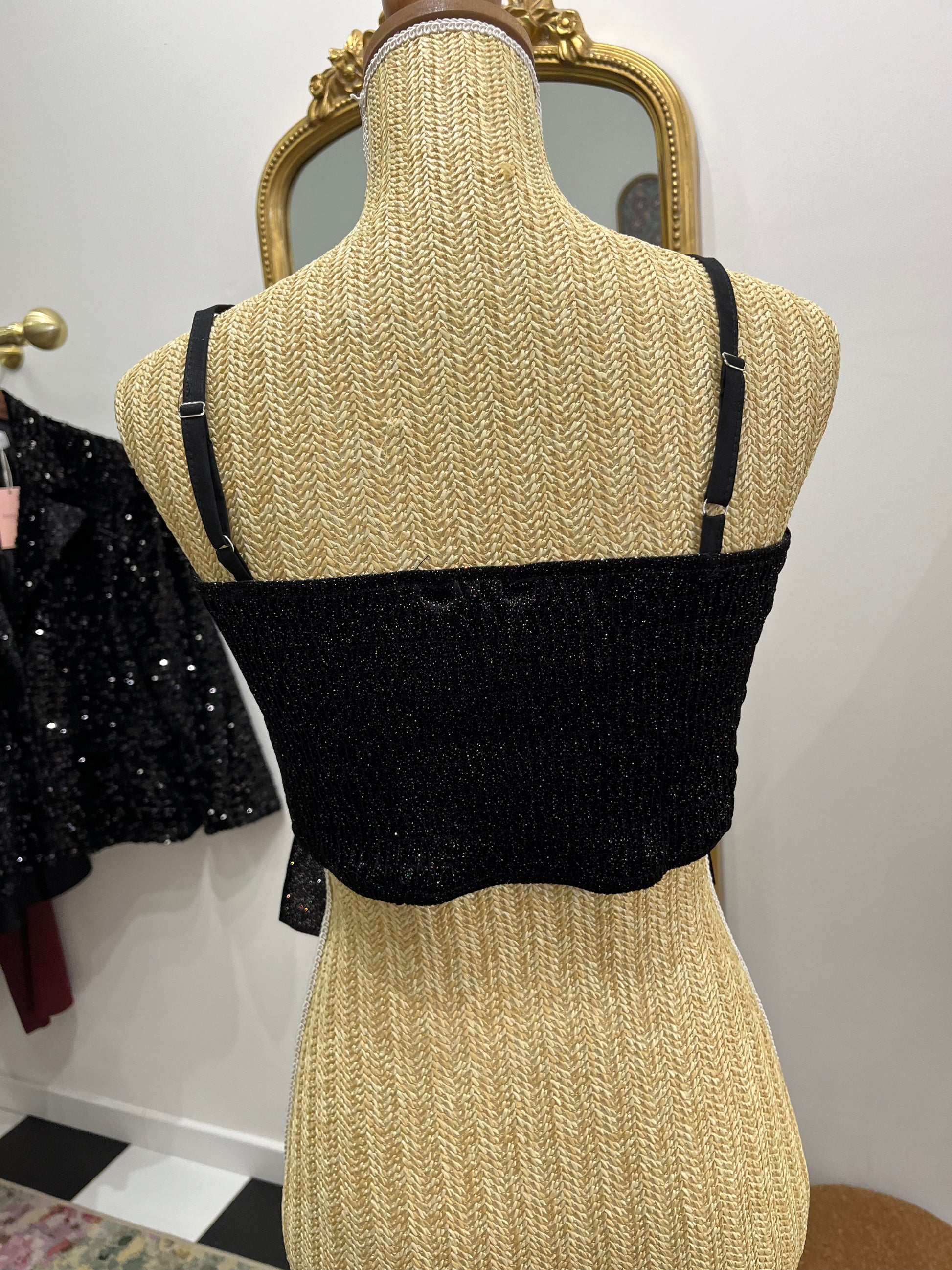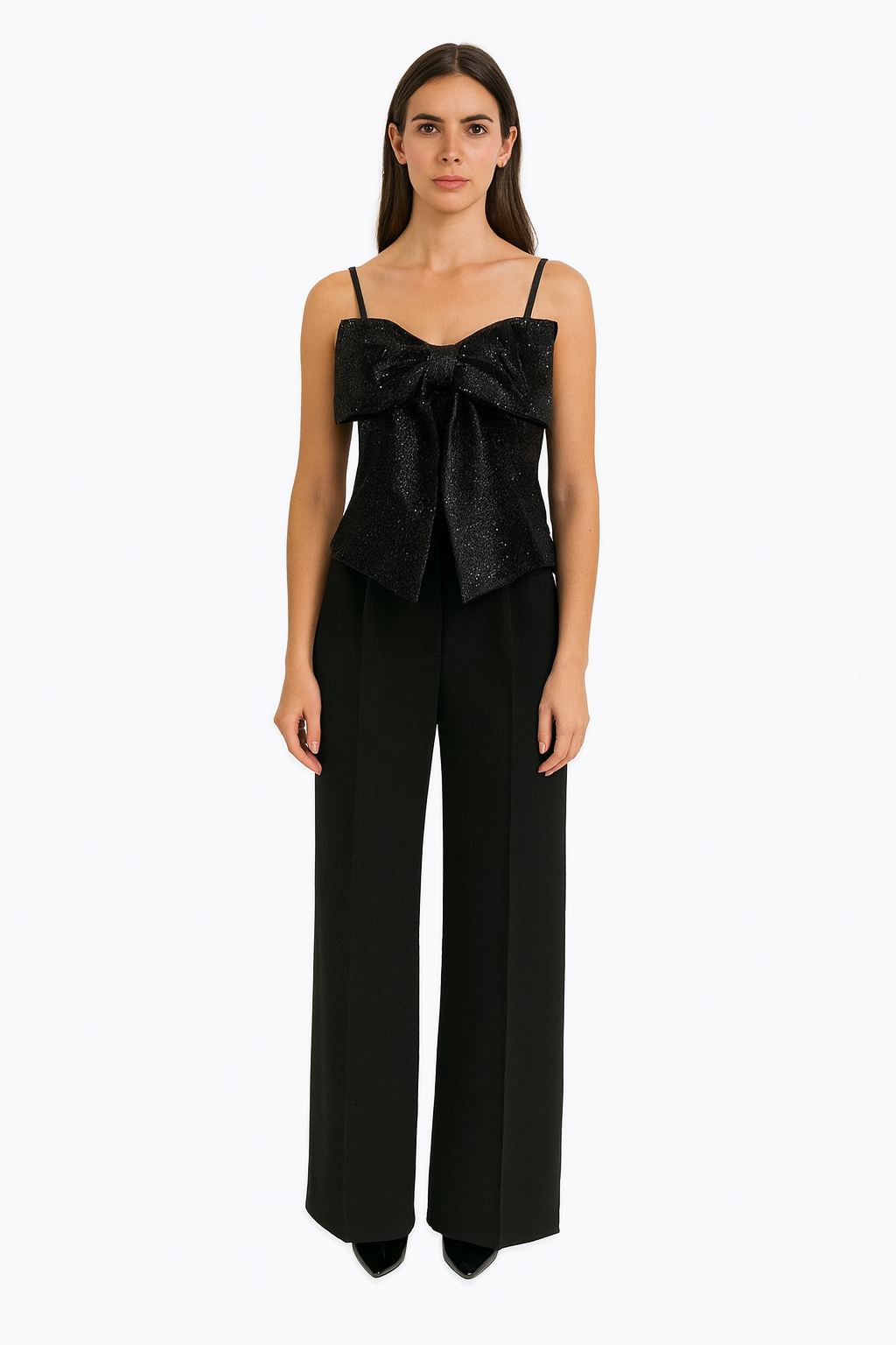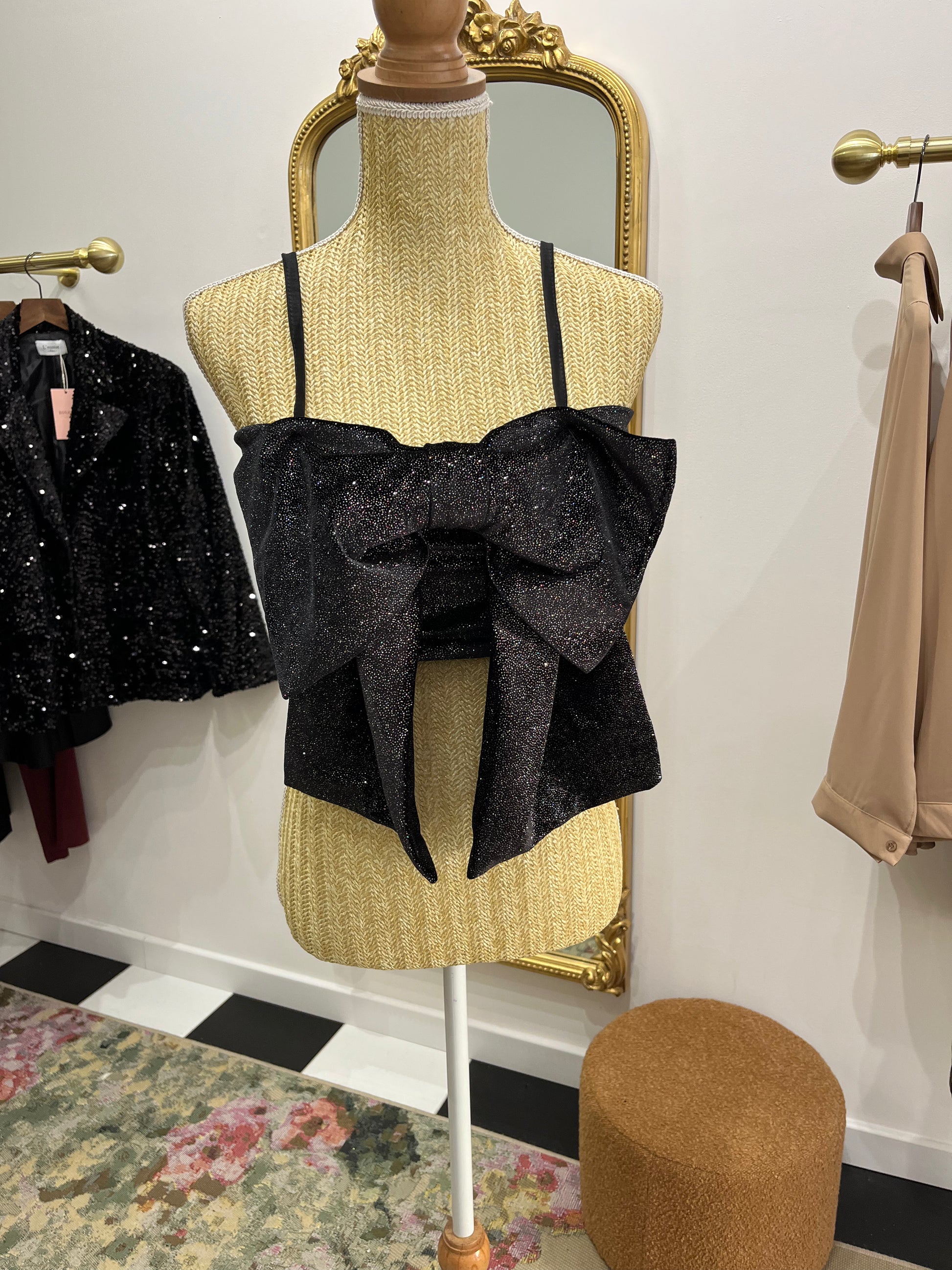 Top en velours sans manches à détail noeud paillettes avec bretelles réglables